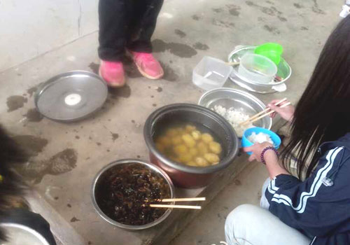 實(shí)踐隊員的午飯:咸菜絲、水煮土豆、米飯