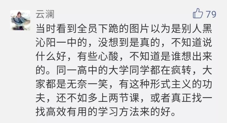 視頻發(fā)布后引發(fā)了網(wǎng)友討論。有人質(zhì)疑此活動(dòng)過于“形式主義”,遭學(xué)校官號(hào)怒懟:思維是不是有毛?11月21日,該所學(xué);貞(yīng)稱,校領(lǐng)導(dǎo)在活動(dòng)前不知情,是高三年級(jí)安排的,下跪只是一種形式,想教孩子們學(xué)會(huì)感恩。