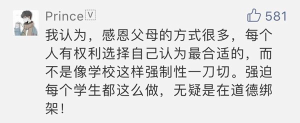 網(wǎng)友“Prince”:強(qiáng)迫所有學(xué)生都這樣做,無疑是道德綁架。