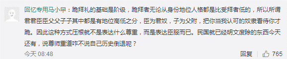 有網(wǎng)友批評(píng)活動(dòng)作用:“跪拜禮是封建階級(jí)文化產(chǎn)物,抹殺了獨(dú)立人格?”