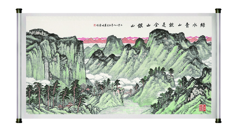 黨的十九大報(bào)告指出,人與自然是生命共同體。綠水青山就是金山銀山不僅是一種理念,更要把它變成實(shí)踐,成為推進(jìn)中國生態(tài)文明建設(shè)的指導(dǎo)思想,推動形成人與自然和諧發(fā)展的現(xiàn)代化建設(shè)新格局。該系列發(fā)于此意。此畫為人民網(wǎng)邀著名畫家創(chuàng)作,素雅大氣,意蘊(yùn)橫生。