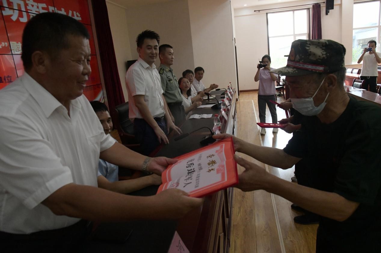 8月1日下午,灤平縣金溝屯鎮(zhèn)下營子村聯合愛心企業(yè)中國郵政儲蓄銀行灤平支行、灤平盛陽村鎮(zhèn)銀行金溝屯支行和承德久財農牧開發(fā)有限責任公司共同舉辦了“退伍不褪色 建功新時代”第二屆“八一”慰問退役軍人座談會;顒蝇F場,大家歡聚一堂,共同慶祝中國人民解放軍建軍95周年,共敘魚水深情,并為優(yōu)秀退役軍人頒發(fā)榮譽證書。 王海琦 郎朗 攝