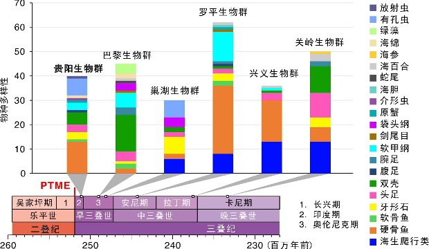 三疊紀生物群多樣性和物種組成對比 。宋海軍/供圖